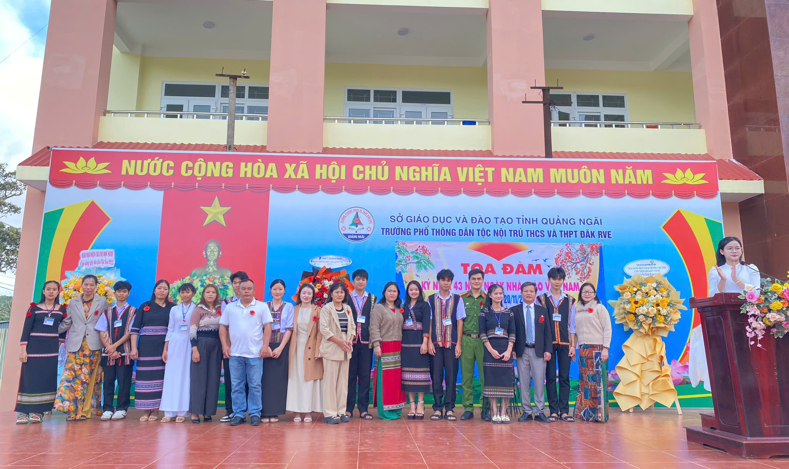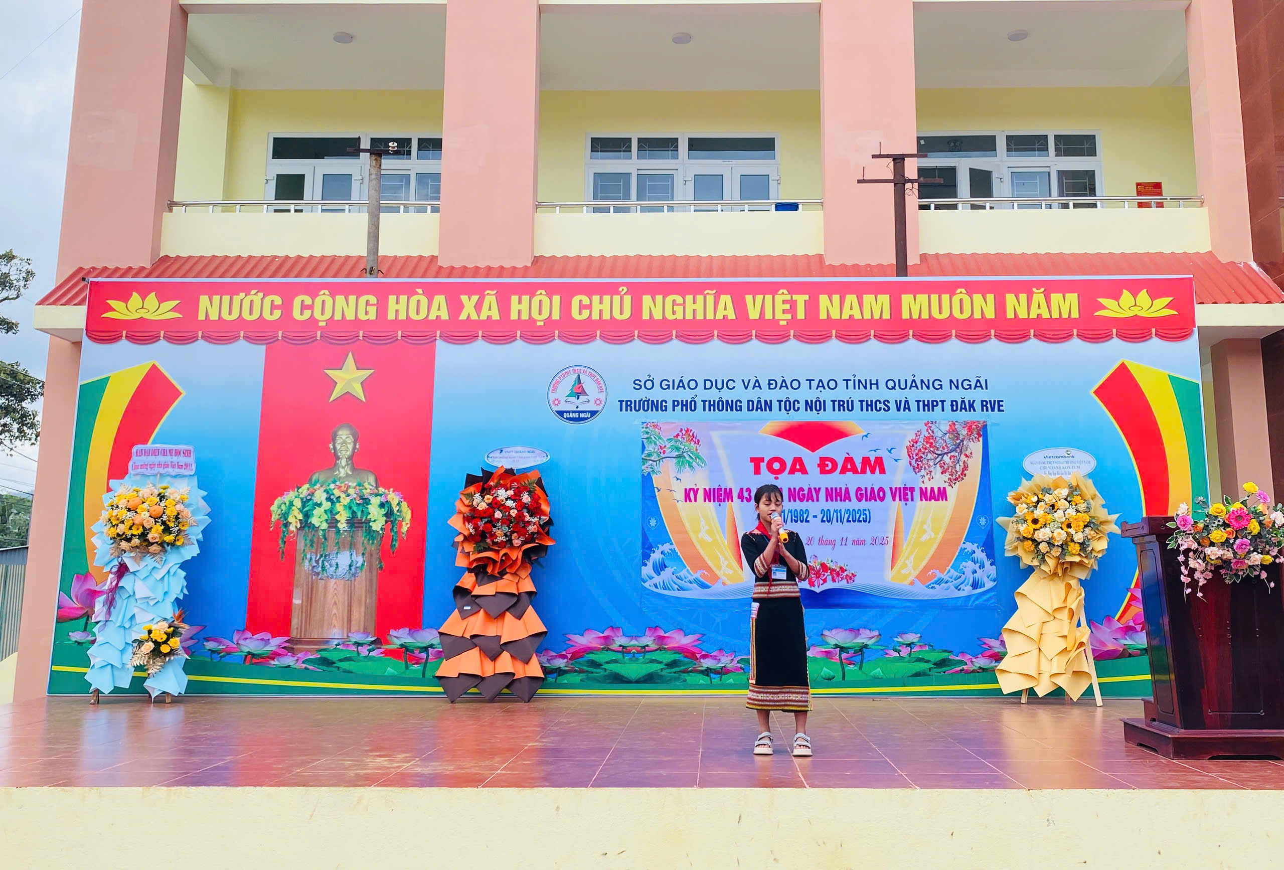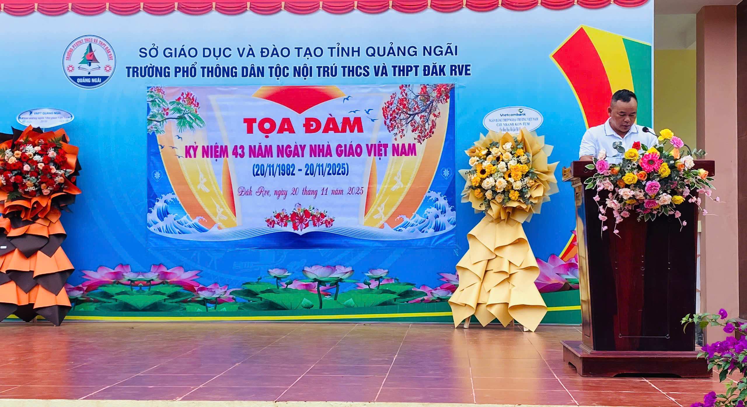 Sáng 20/11, Trường PT DTNT THCS & THPT Đăk Rve tổ chức buổi tọa đàm tri ân nhân kỷ niệm 43 năm Ngày Nhà giáo Việt Nam. Tham dự có lãnh đạo xã Đăk Rve; thầy Trần Đạo – Bí thư Chi bộ, Hiệu trưởng; cùng toàn thể cán bộ, giáo viên và hơn 400 học sinh.