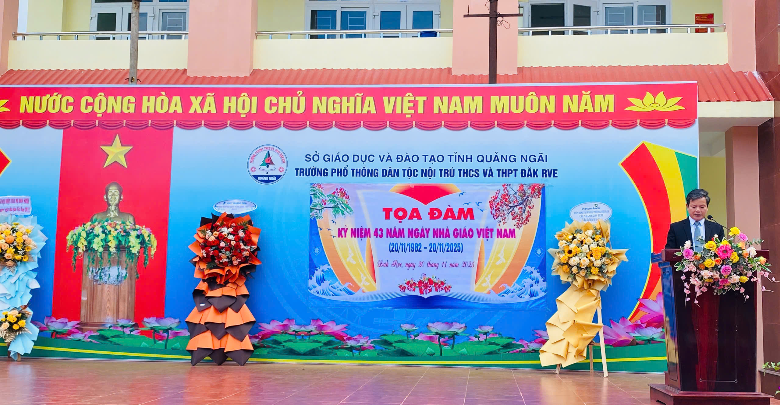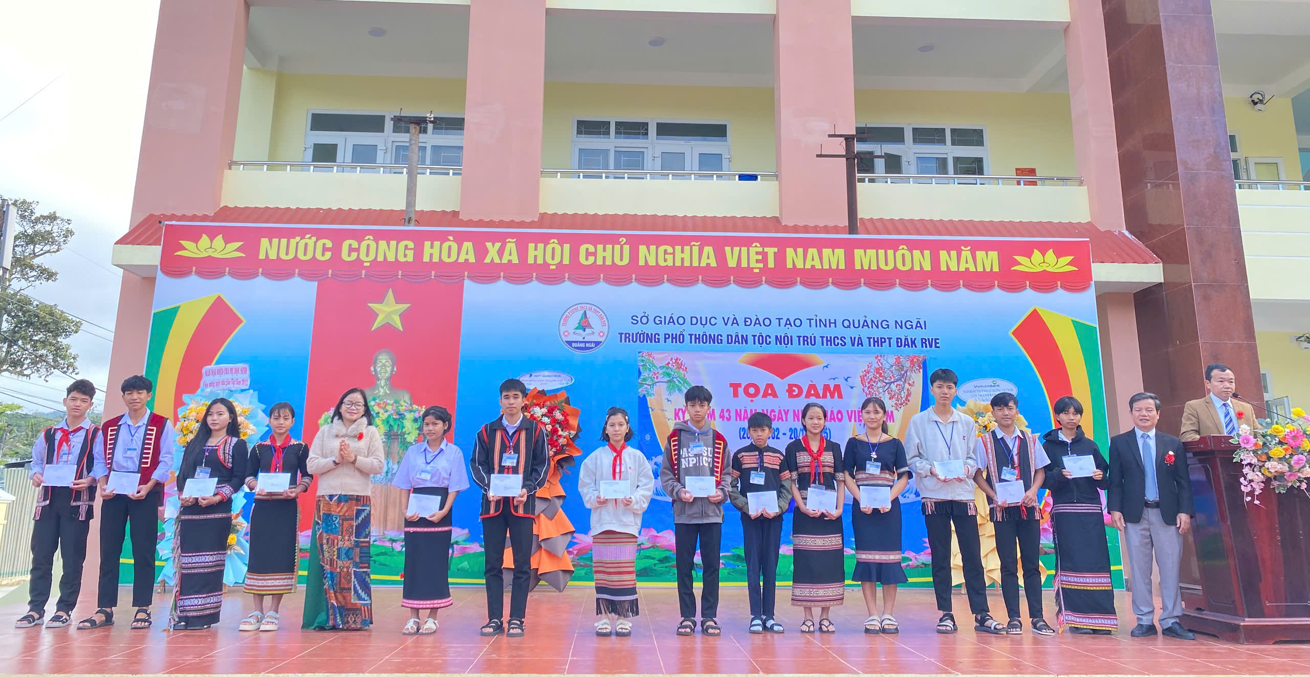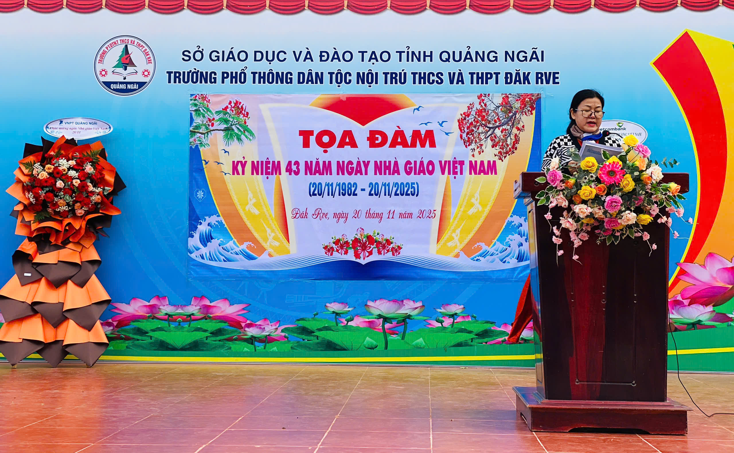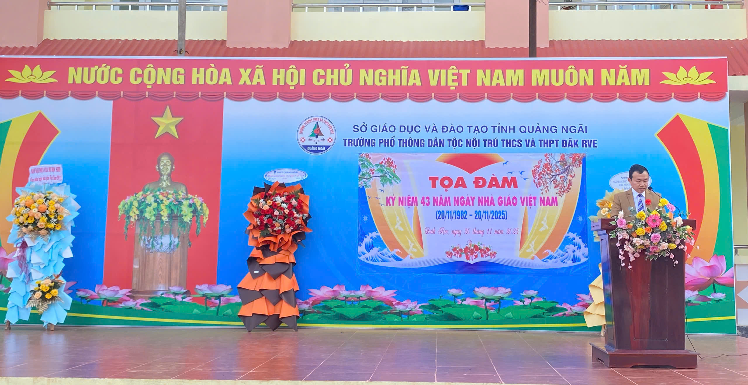 Sáng 20/11, Trường PT DTNT THCS & THPT Đăk Rve tổ chức buổi tọa đàm tri ân nhân kỷ niệm 43 năm Ngày Nhà giáo Việt Nam. Tham dự có lãnh đạo xã Đăk Rve; thầy Trần Đạo – Bí thư Chi bộ, Hiệu trưởng; cùng toàn thể cán bộ, giáo viên và hơn 400 học sinh.