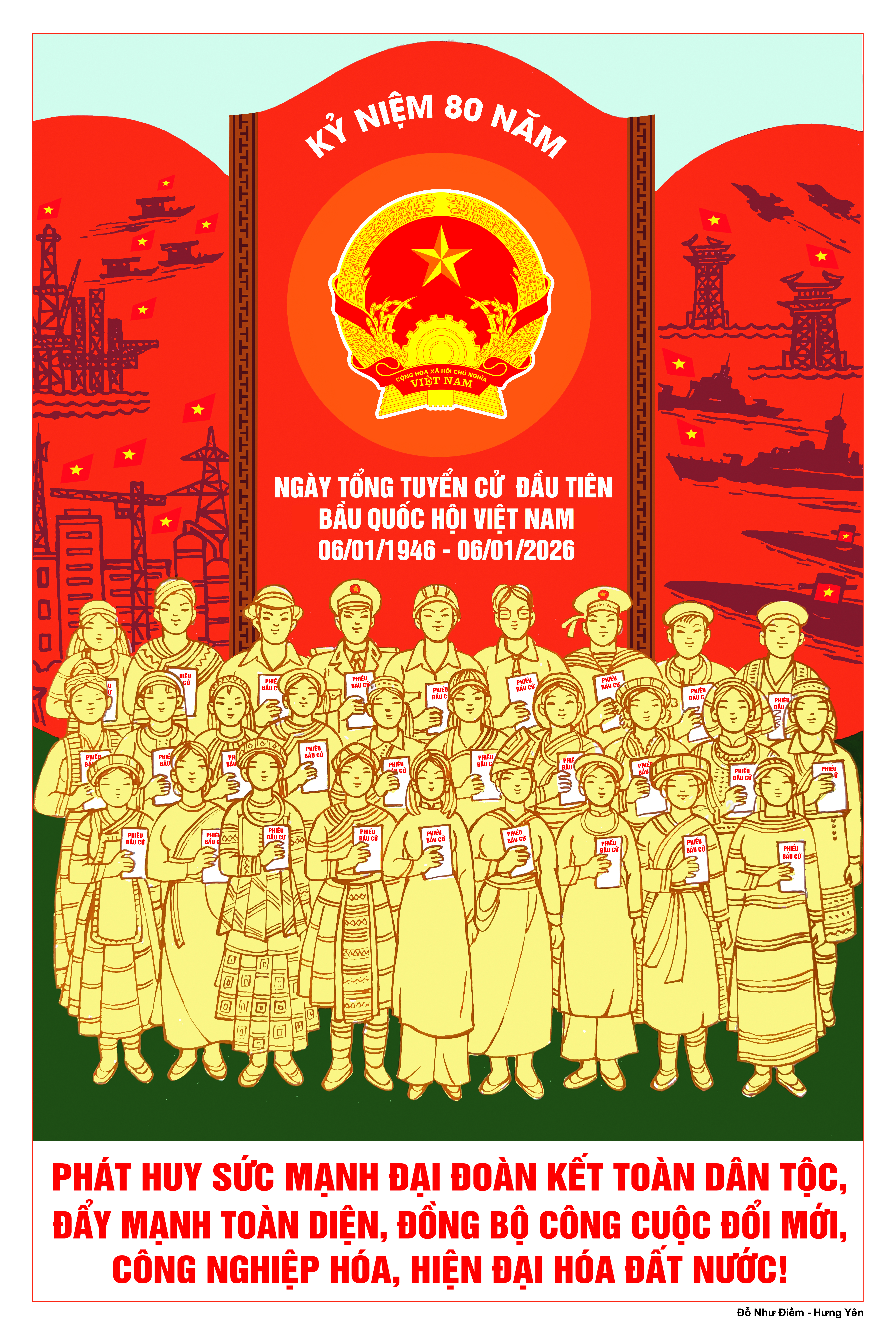 Tranh tuyên truyền bầu cử đại biểu Quốc hội khóa XVI và đại biểu Hội đồng nhân dân các cấp nhiệm kỳ 2026-2031